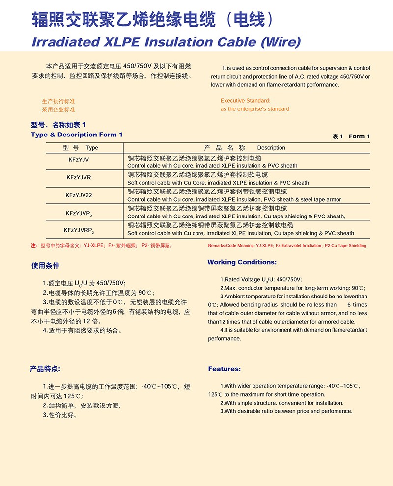 輻照交聯(lián)聚乙烯絕緣電纜(電線)的產品詳細介紹: