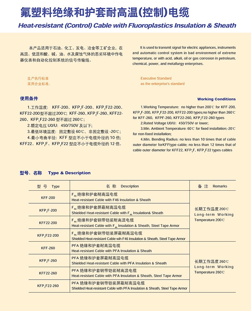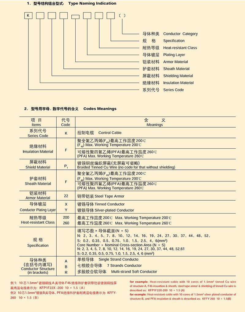 氟塑料絕緣和護套耐高溫(控制)電纜的產品詳細介紹: